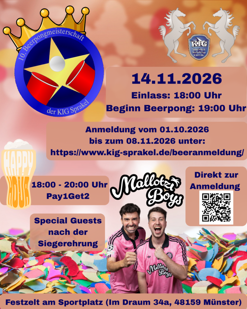 Falls es Rückfragen geben sollte, dann schreib uns eine Mail an: beerpong@kig-sprakel.de